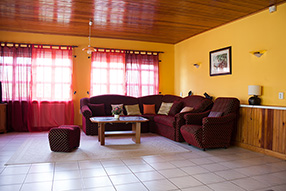 A házban két hálószoba, tágas nappali, felszerelt konyha, előszoba, közlekedő, zuhanyzó, WC, illetve nagy kiterjedésű, fedett terasz és fedett autóbeálló található. A maximális férőhelyek száma 6 fő, mely a hálószobákra jellemző két és egyszemélyes ágyak által adódik össze.